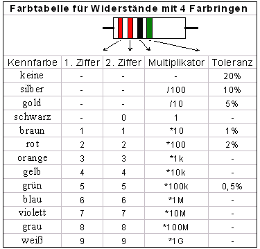 Widerständen kann die Größe des Wiederstandwertes in einem bestimmten